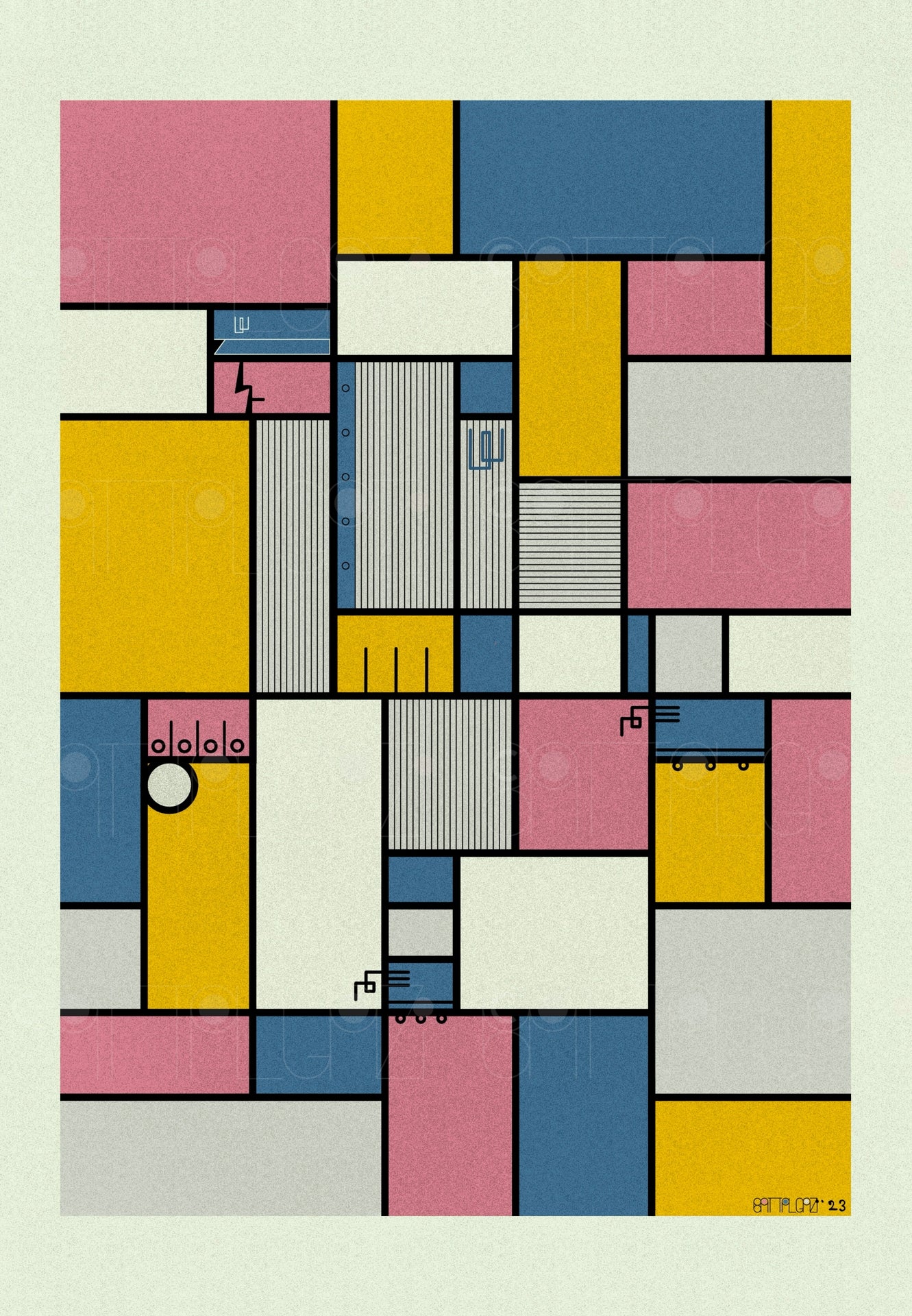 Mondrian inspired museum-quality archival print — limited edition, digitally signed & stamped by John Battalgazi for authenticity. Only 100 prints to be issued.